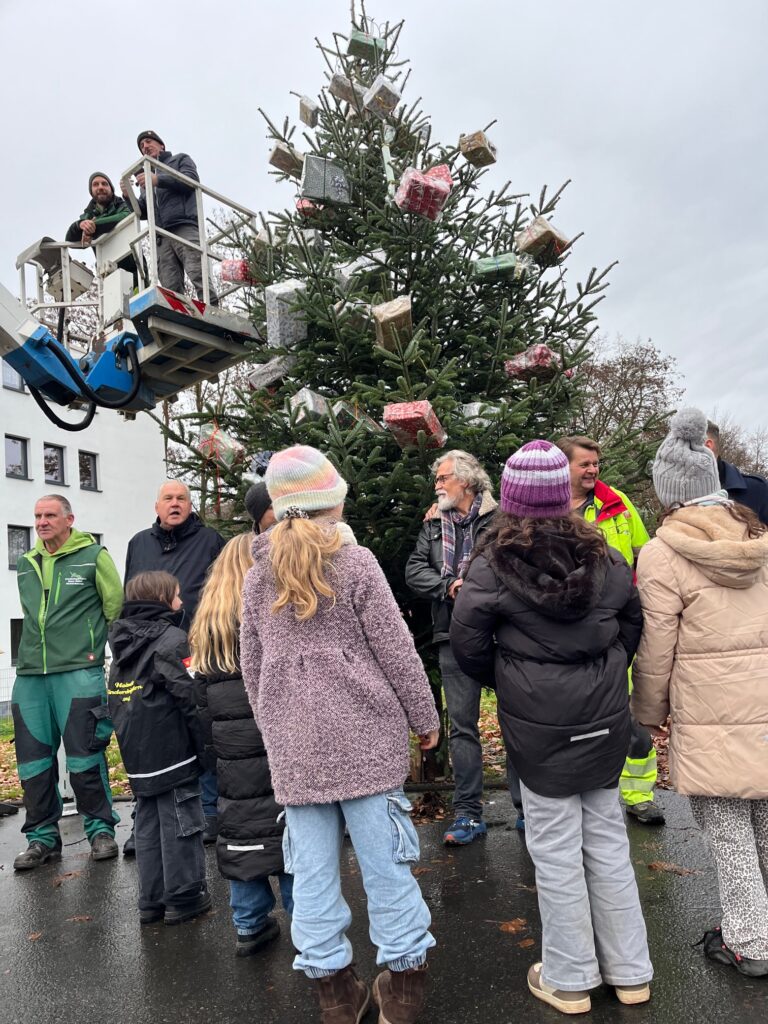 und bei Glühwein und leckeren Süßigkeiten von Schulkindern mit Geschenken geschmückt.